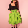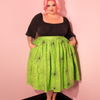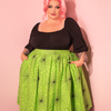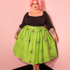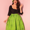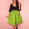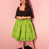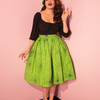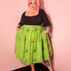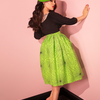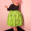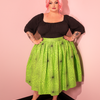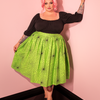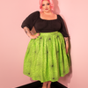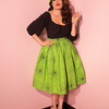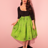 The most fabulous gathered vintage-inspired skirt out there! The Vixen Swing Skirt is produced in our classic cotton sateen and is featured in a vintage spiderweb print in a fun slime green colorway. Since this is made from heavyweight stretch cotton sateen it has a firmer fit and features a 1.75-inch waistband and hidden pockets so deep they will easily hold your smartphone and more! Finished with a back zippered closure.