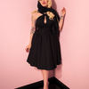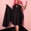 The Golden Era is a curve-killing, sexy swing dress paired with a perfect vintage-inspired matching scarf. Inspired by 1930's old Hollywood gowns and redesigned to work for the modern vixen. Our Golden Era swing dress can be worn with or without the scarf and will get everyone's attention. The keyhole halter neckline is adjustable by moving the center loop and can accommodate multiple bust sizes and heights. The body is made of a soft techno crepe with a fused waist and bodice, which gives you support while providing some stretch. This dress is finished with our signature deep pockets, a back zip and adjustable straps. Comes with a 1" self belt.