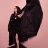 Our fan favorite Golden Era Dress is now a gown! The Golden Era Gown is a curve-killing, sexy draped dress in lush velvet that is perfect for that next holiday party or red carpet event. Inspired by 1930's old Hollywood and redesigned to work for the modern day Vixen. Our Golden Era Gown is paired with elbow length gloves for added drama. The neckline is adjustable by moving the center loop and can accommodate multiple bust sizes and heights. The body is made from a soft stretch velvet with a fused waist and bodice, which gives you support while providing some stretch. This dress is finished with a back zip and adjustable straps.