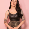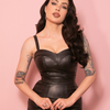 The ultimate bust-defining top with hidden internal padded cups and adjustable straps. This top is immaculately made from vegan faux leather that has a fused bust and is fully lined (excluding the straps). This Maneater top has been updated to include black lining. The top has a metal long black zipper on the back for durability and is full-length, which means it can be worn tucked in out of your clothing. Made from the same great material as our other iconic vegan faux leather pieces so you can easily mix and match! This material only has a mechanical stretch so please check the size chart before ordering.