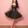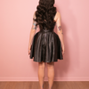 A sultry wardrobe staple that every Vixen needs: our Bad Girl Skater skirt! This new style is shorter than our full circle skirt and starts at 19 inches from waist to hem. This perfectly engineered piece is made from vegan faux leather that is completely cruelty-free and looks and feels like the real deal. This skater skirt is fully lined in our own custom bad girl black stretch lining and features heavy-duty hardware and our giant pockets. Wear this circle skirt with or without a crinoline to show off your inner Vixen!