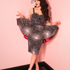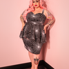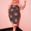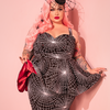 FINAL SALE - Glamour Girl Peplum Dress in Black and White Spiderweb - Vixen by Micheline Pitt