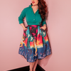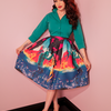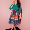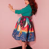 Unveil your inner scream queen with our Universal Monsters: Creature from the Black Lagoon Vintage Movie Poster Skirt! This captivating skirt features a stunning watercolor print, bringing the original French movie poster art to life. This breathable twill is meticulously wet digitally printed. Watch in awe as the Creature emerges from the depths, ready to claim the heroine, in this hauntingly beautiful scene. Crafted with meticulous attention to detail, this gathered swing skirt captures the essence of retro silhouettes from the 1950s and 1960s, making it the perfect homage to vintage style. The back zip ensures a snug fit, while the generously sized pockets provide both convenience and is fully lined in a beautiful contrast charmeuse.