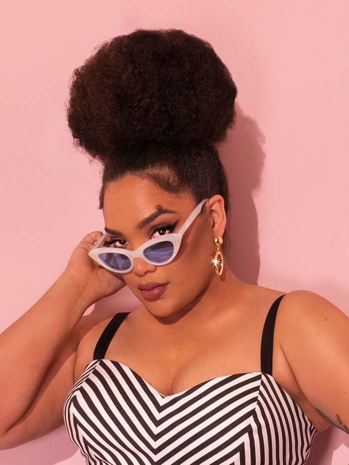 Fashion Doll Cat Eye Sunglasses in White - Vixen by Micheline Pitt