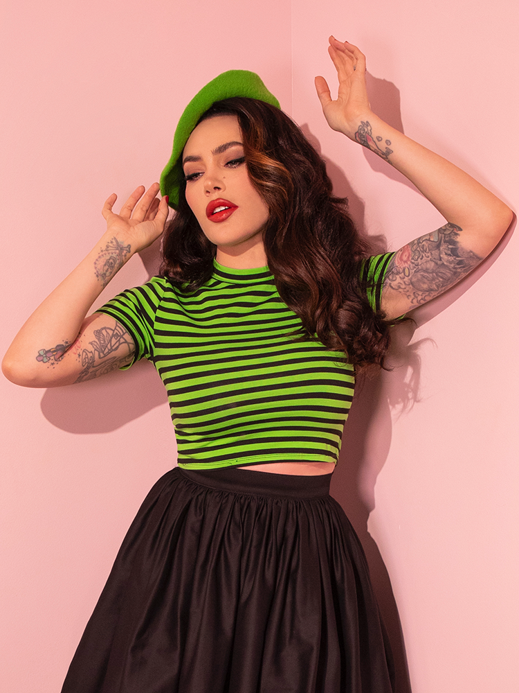 Bad Girl Crop Top in Pink and Black Stripes - Vixen by Micheline Pitt