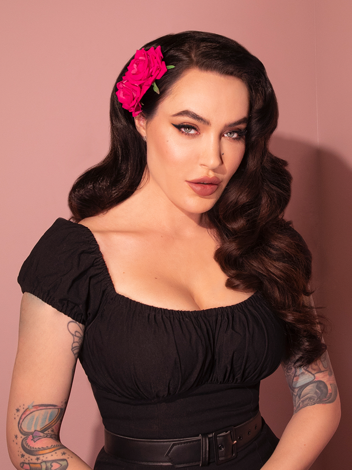1950s Inspired Chiffon Scarf in Pink Rose Print - Vixen by Micheline Pitt