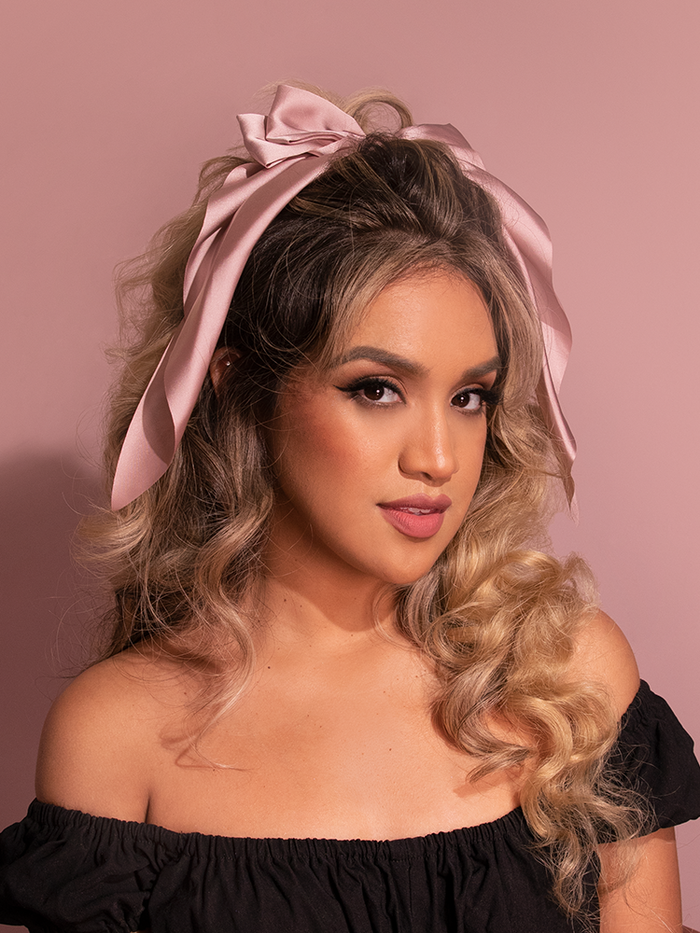 Thin Satin Headband with Warm Pink Hair Bow