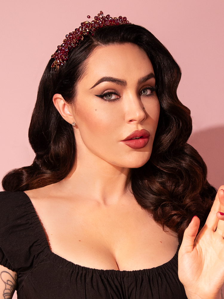 NON-DAMAGED BACKLOT - Rhinestone Beaded Headband in Garnet