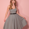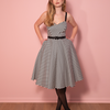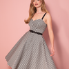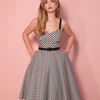 The Dollface Dress in Black and White is a perfect example of vintage charm, featuring a fitted waist and a full skirt for effortless style.