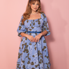 Vacation Dress in Sunset Blue Roses - Vixen by Micheline Pitt
