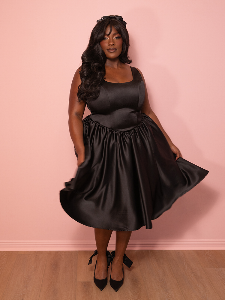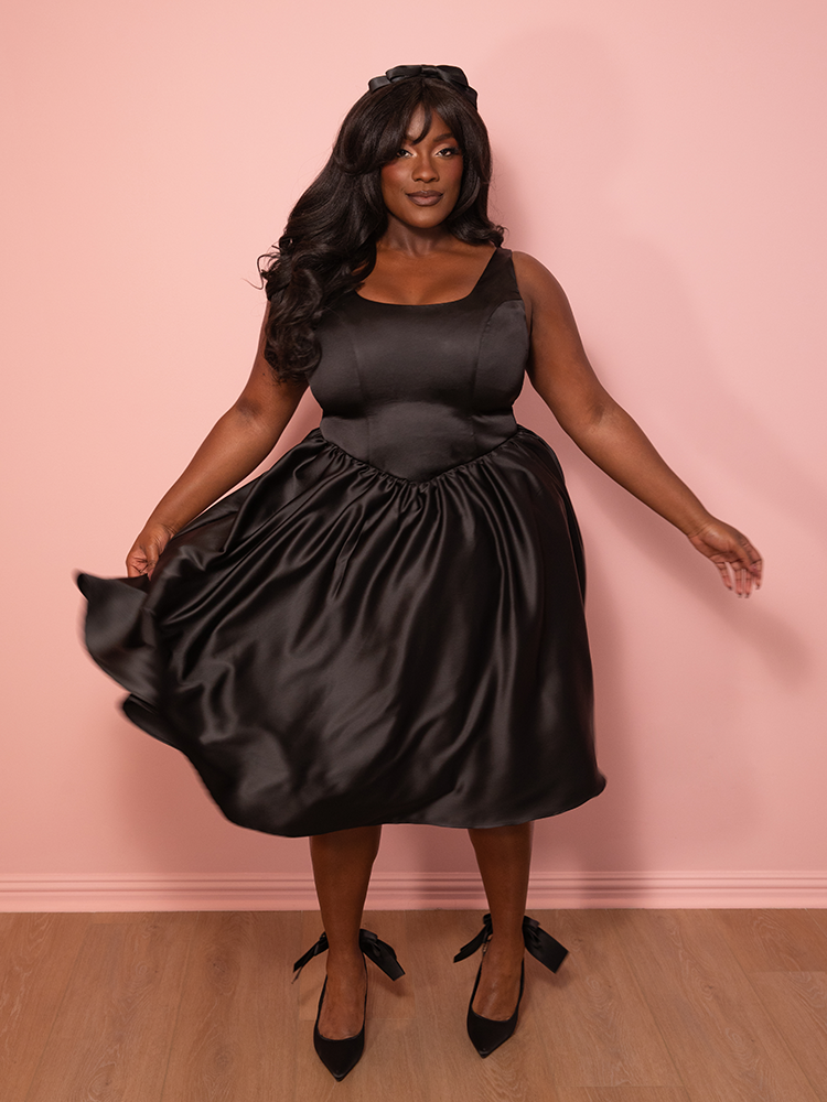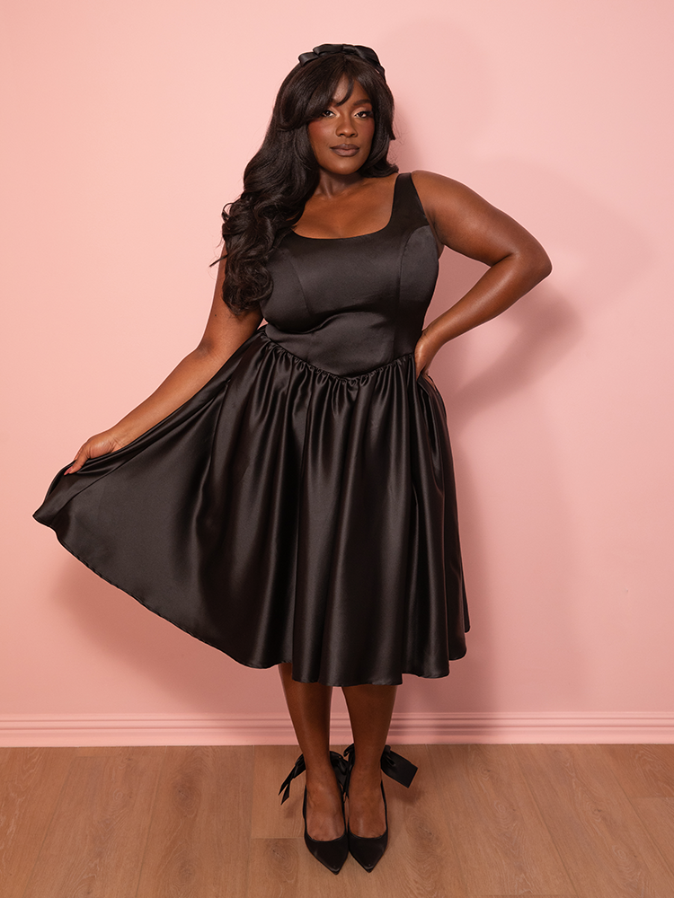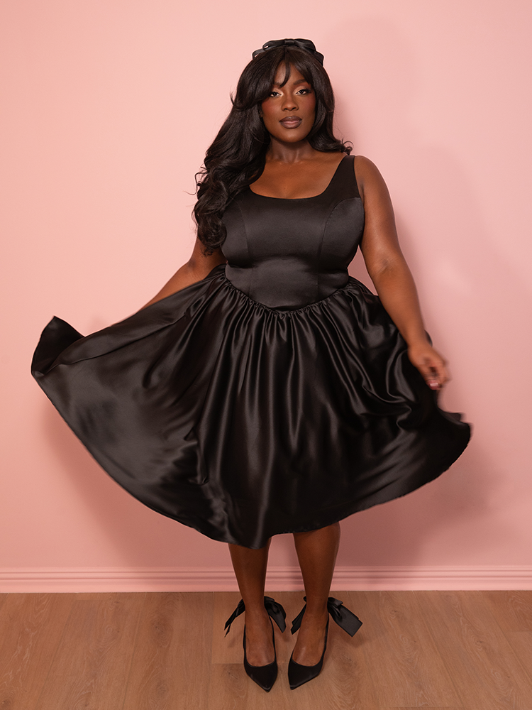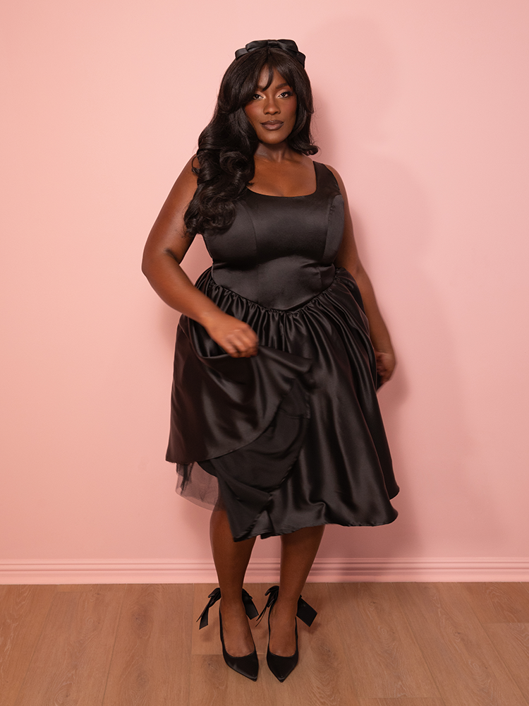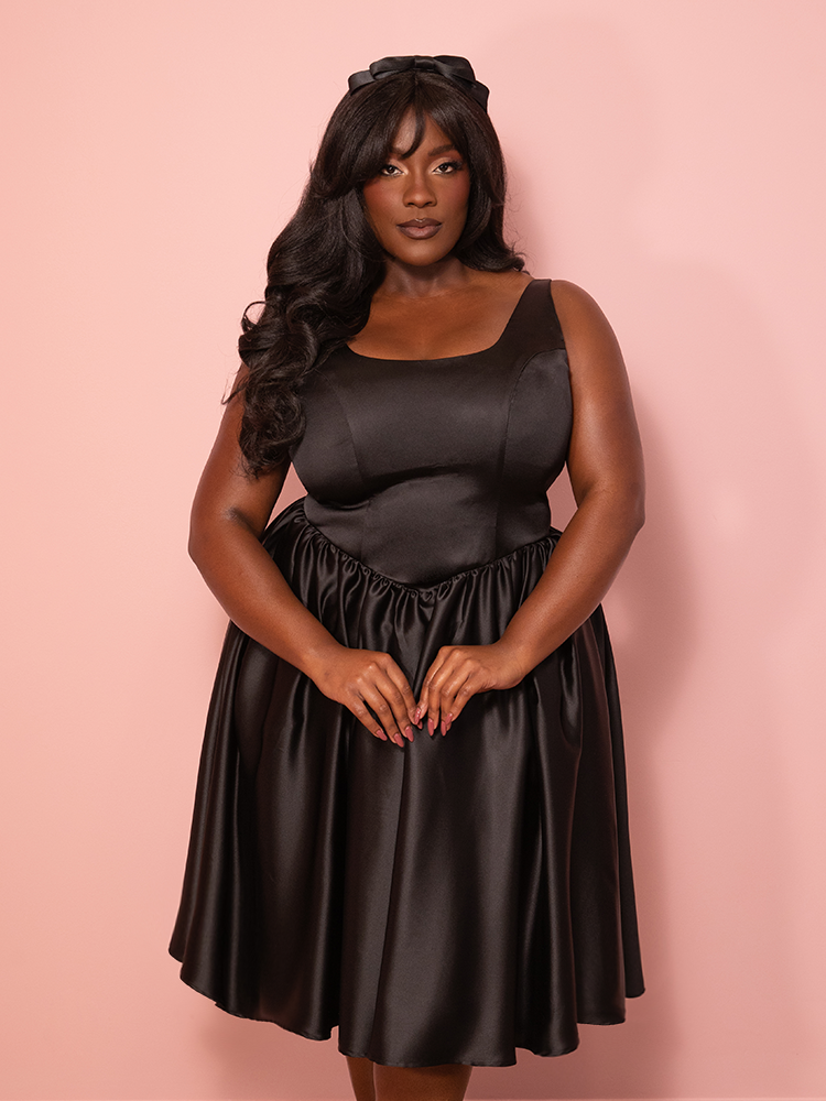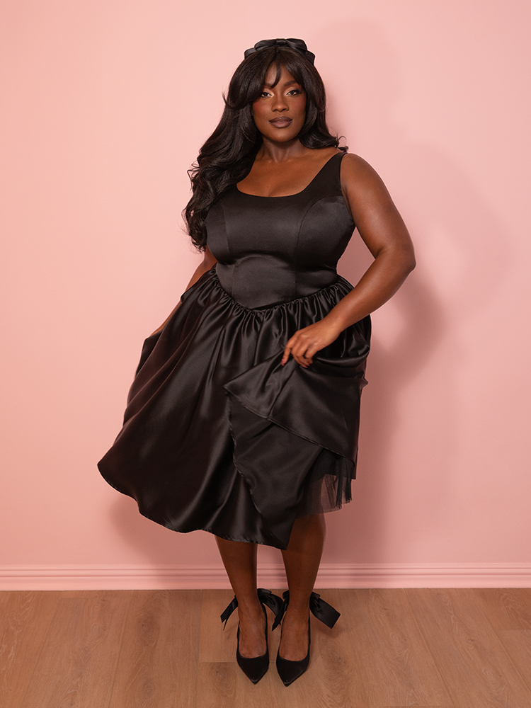 Satin Coquette Dress in Black - Vixen by Micheline Pitt