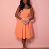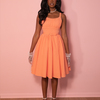Indulge in the best of both worlds with the Ingenue dress - elegance and comfort combined! This 1950s-inspired dream dress boasts a stunning peachy sorbet color and is completely wrinkle-resistant for effortless travel. Its unique crepe texture and ultra-soft brushed interior make it super stretchy, crafted from poly/spandex. Adjustable straps and a slightly shirred waist provide ultimate comfort, and let's not forget about the pockets! This dress adds a bit more volume to our classic style and is complete with a back zip and removable 1-inch self-belt.