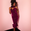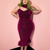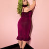 “Never trust the living!” Pulling inspiration from the Afterlife waiting room we present the Waiting Room Dress! This glamorous fuschia lurex dress is inspired by the magician’s assistant who met her untimely demise by being cut in half. Comes with a 1" belt of self-fabric. The choker comes with the dress and is lined in ITY with an elastic button loop for slight ease on the neck.