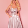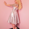 Lights, camera, action! Feel like a Hollywood star in this opulent swing dress. This sexy number brings the sass and shine to any party. This laminate Bengaline dress features a sweetheart neckline with pleated bust detailing. The dress has a full circle hem perfect for nights made for twirling. Fully lined bodice, back zip, and includes a 1" self-matching belt.