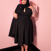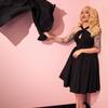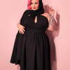 The Golden Era is a curve-killing, sexy swing dress paired with a perfect vintage-inspired matching scarf. Inspired by 1930's old Hollywood gowns and redesigned to work for the modern vixen. Our Golden Era swing dress can be worn with or without the scarf and will get everyone's attention. The keyhole halter neckline is adjustable by moving the center loop and can accommodate multiple bust sizes and heights. The body is made of a soft techno crepe with a fused waist and bodice, which gives you support while providing some stretch. This dress is finished with our signature deep pockets, a back zip and adjustable straps. Comes with a 1" self belt.