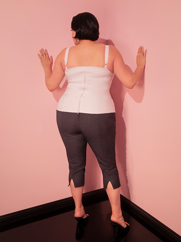 These capris are my favorite from any of the pinup type brands. I have tried a lot! These are the best quality of all of them. The others are thinner and tend to show every imperfection or worse are semi-transparent. I only wish there were more colors and options from Vixen because I would get them all. They're very comfy. Shown here in a 2X!