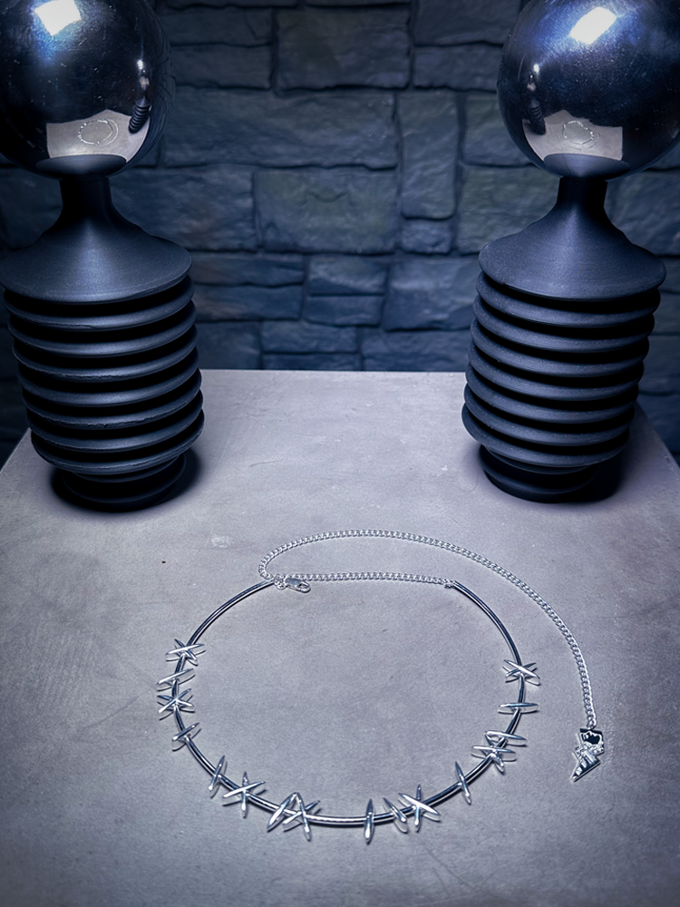 Inspired by the iconic stitches of the Bride of Frankenstein, this sterling silver-plated choker is the ultimate accessory to complete your look with our Bandage Corset Wiggle and Swing Dresses—or any outfit that calls for a bold, dramatic statement.
