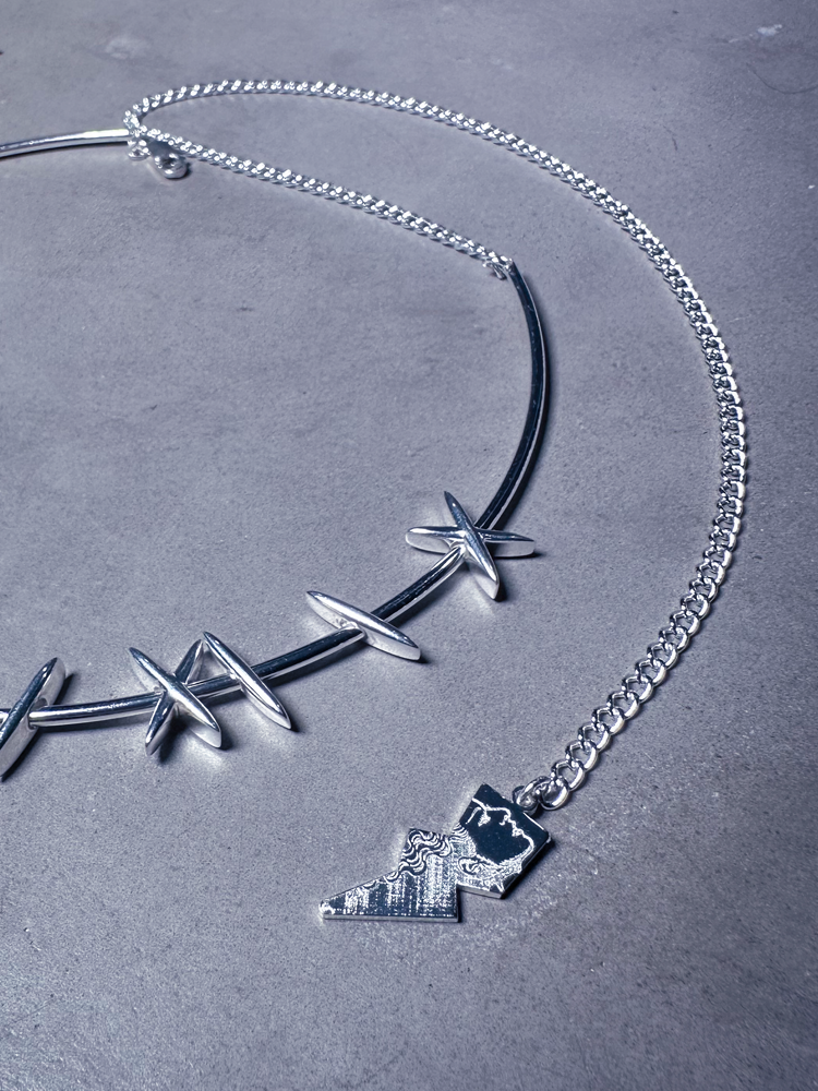 This meticulously crafted piece is fully adjustable to your body. Featuring a bendable sterling silver-plated choker and 3D stitch charms, you can customize both the look and fit of your necklace. The design wouldn’t be complete without a clasp closure and an adjustable chain, which features a lightning bolt charm with her image, a nod to the Bride herself. Hypo-allergenic and lead free.