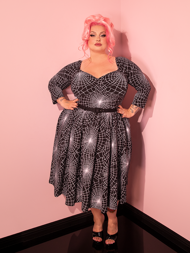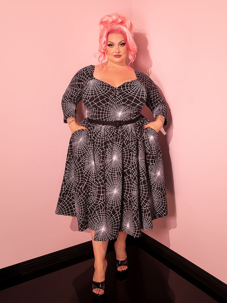 NON-DAMAGED BACKLOT - Wicked Swing Dress in Vintage Spiderweb Print - Vixen by Micheline Pitt