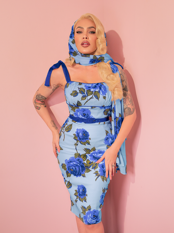 PRE-ORDER - Ingenue Wiggle Dress in Vintage Green Rose Print - Vixen by Micheline Pitt