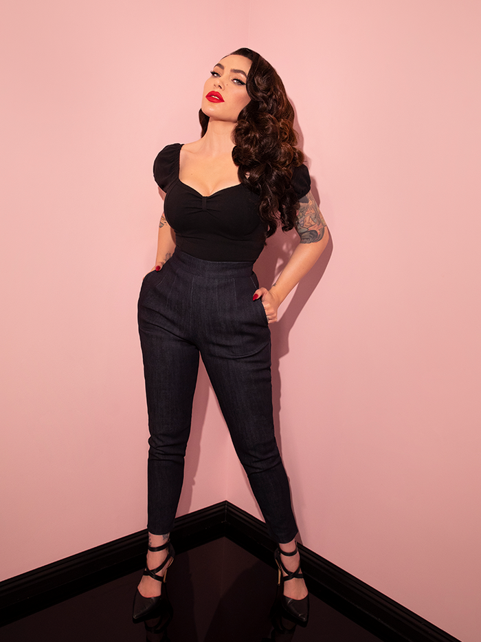 NEW FIT - Cigarette Pants in Black Twill - Vixen by Micheline Pitt