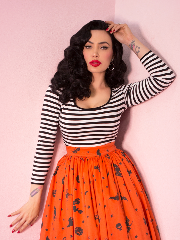 PRE-ORDER - NEW FIT - Bad Girl 3/4 Sleeve Top in Black and White Stripes - Vixen by Micheline Pitt