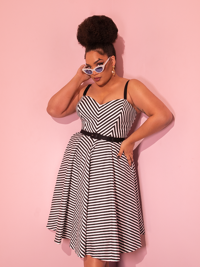 PRE-ORDER - NEW FIT - Bad Girl Crop Top in Black and White Stripes - Vixen by Micheline Pitt
