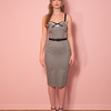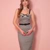 The ultimate wiggle dress inspired by the iconic style of Bardot. This 1950's inspired dress is made from a soft high quality cotton/spandex stretch sateen with a cotton eyelet trim. This dress features adjustable straps, a bust tie bow, and princess seams to define the body. The bodice is fully lined and the front is fused to give your ladies proper support. The Bardot is finished with a back zippered closure and removable 1 inch black belt.