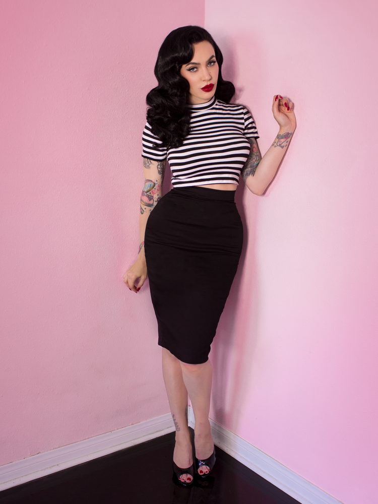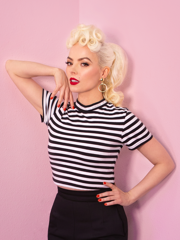 PRE-ORDER - NEW FIT - Bad Girl Crop Top in Black and White Stripes - Vixen by Micheline Pitt
