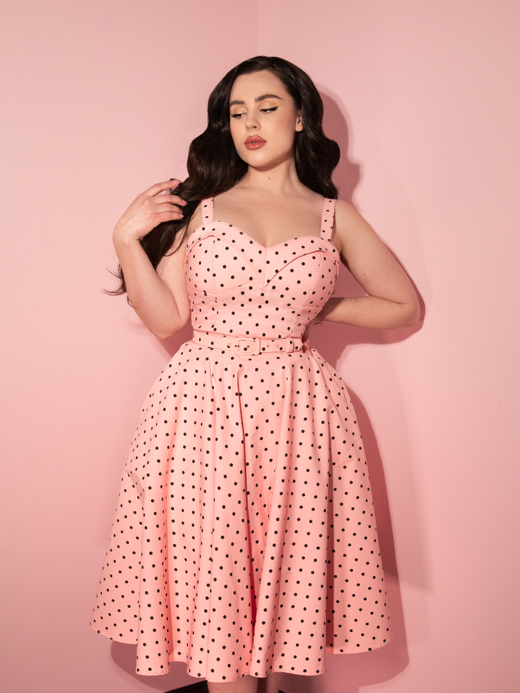 COMING BACK SOON - Maneater Swing Dress in Rose Pink Polka Dot - Vixen by Micheline Pitt