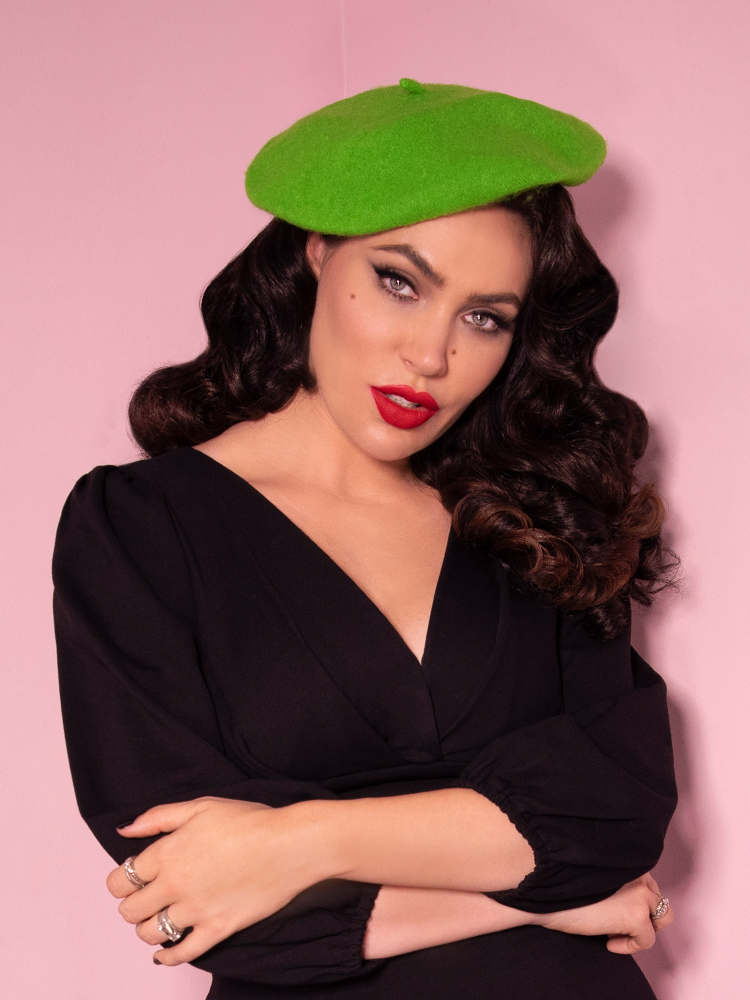 NON-DAMAGED BACKLOT - Vintage-Style Beret in Slime Green