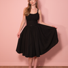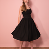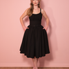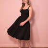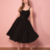 This dress is completely wrinkle-resistant with a cut inspired by the iconic style of 1950s sun dresses. Basically, it was designed for travel and comfort. With a unique crepe texture and a super soft brushed interior, this dress is made from poly/spandex and is super stretchy. The bust features a sexy yet wearable neckline and adjustable straps for ultimate comfort and wearability. The Ingenue dress has a slightly shirred waist that does not add too much volume and did we mention it has pockets!? The dress is a little fuller than our classic styles with a slightly shirred waist. The dress is finished with a back zip and a removable 1-inch matching grommet belt.